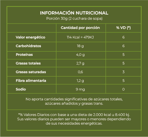 Grano entero y molido que conserva su estado natural crudo que contiene toda su fibra y nutrientes.